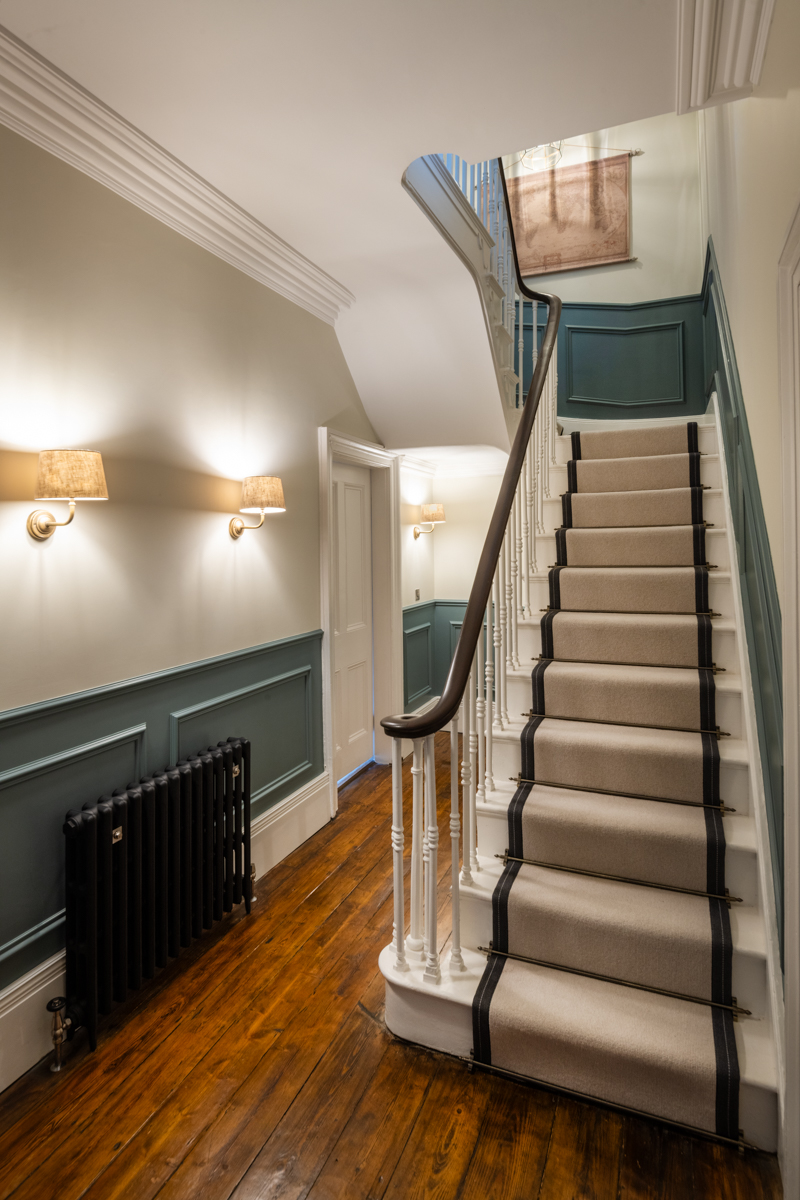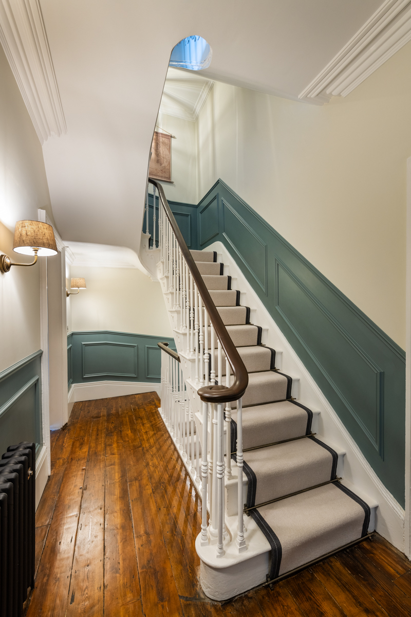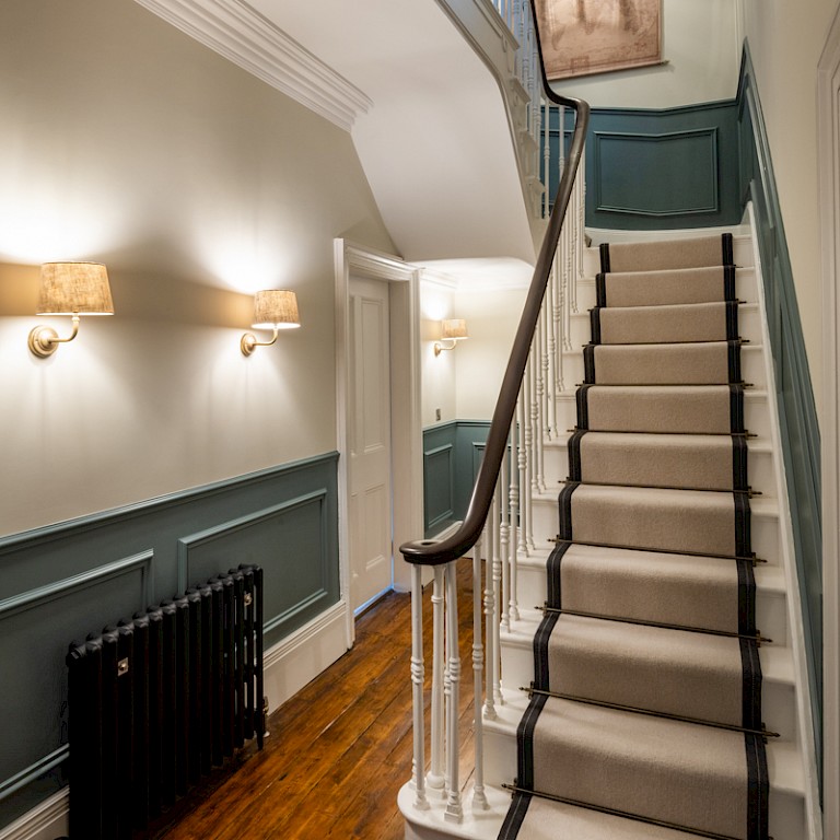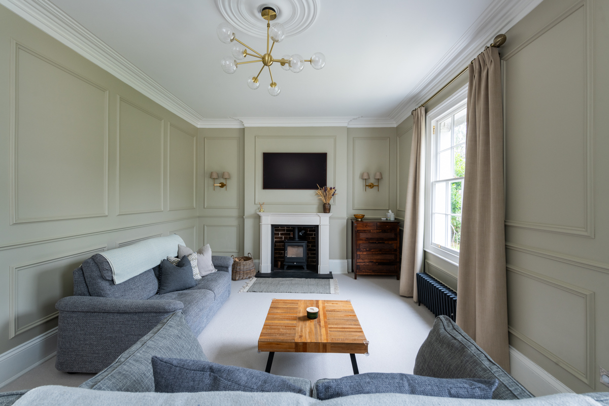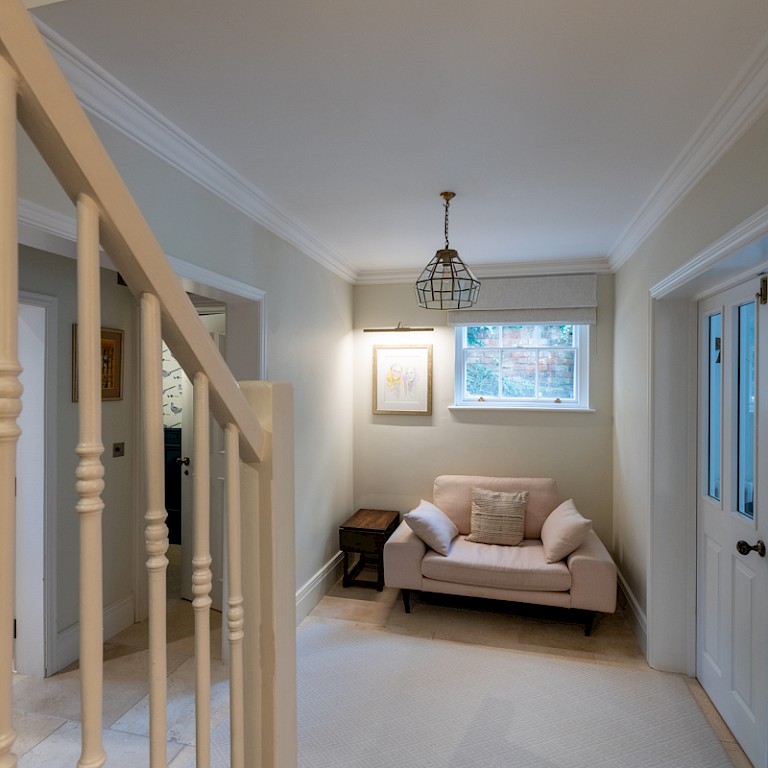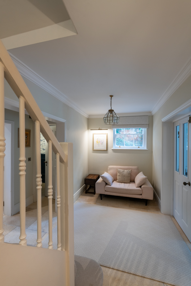 The client wanted to preserve the character of a historic building, enhancing the original features. Interior renovation was carried out to all rooms including the hallways, staircase, kitchen & utility room, bathrooms, public rooms and bedrooms. We also excavated and created a lightwell structure to let light into basement rooms. We carried out all painting & decorating work, installed the kitchen & utility, bathrooms, timber panelling, coving, flooring, lighting, radiators, internal doors and fitments. We refurbished the staircase, wooden flooring and conservation coving and finally landscaped the exterior. We enhanced a traditional property with modern elegance and functionality.