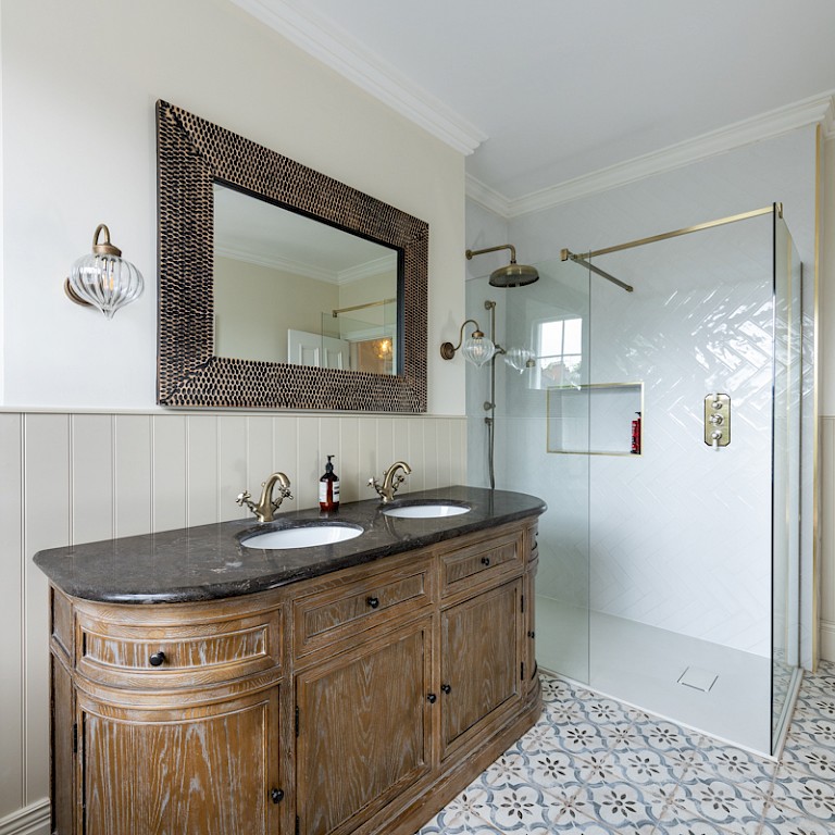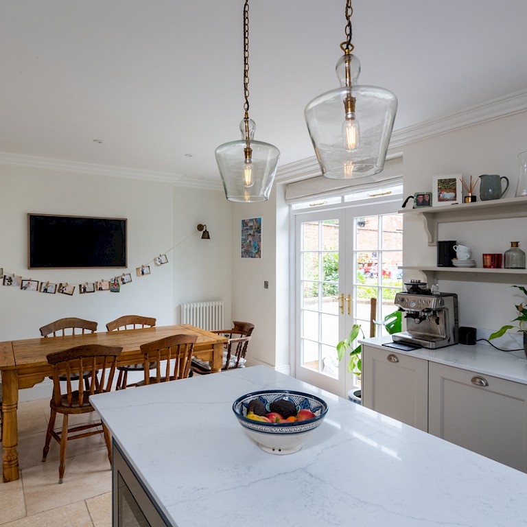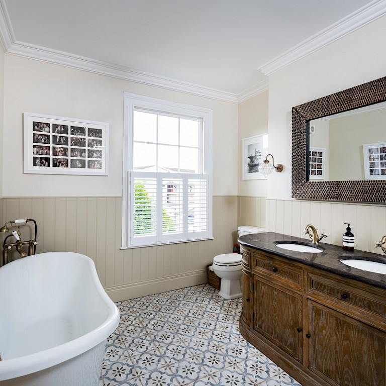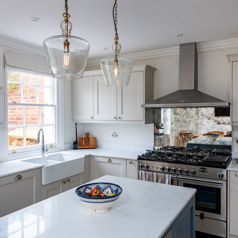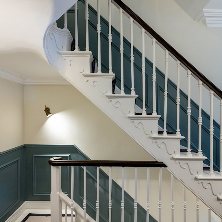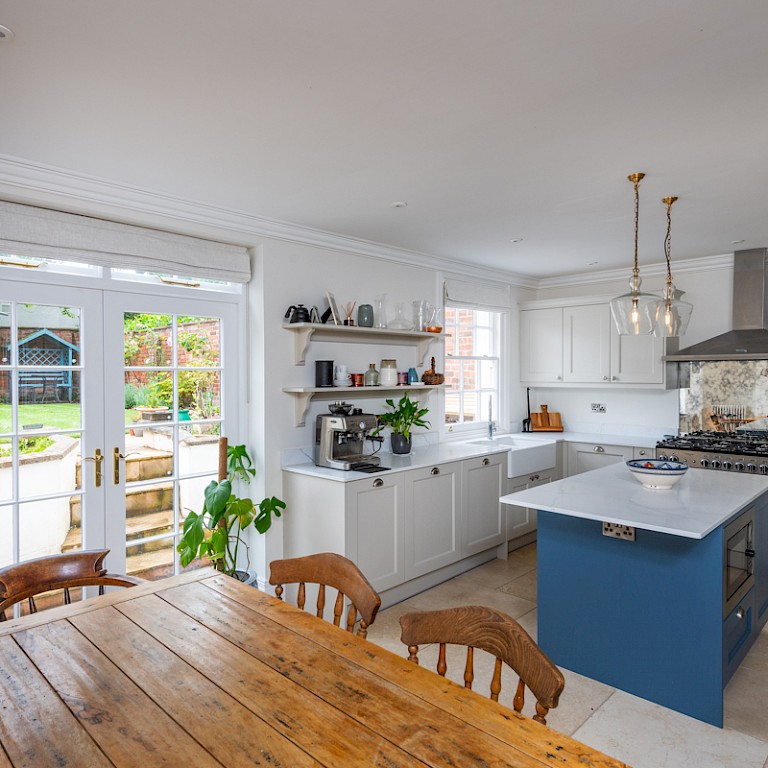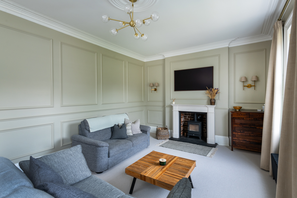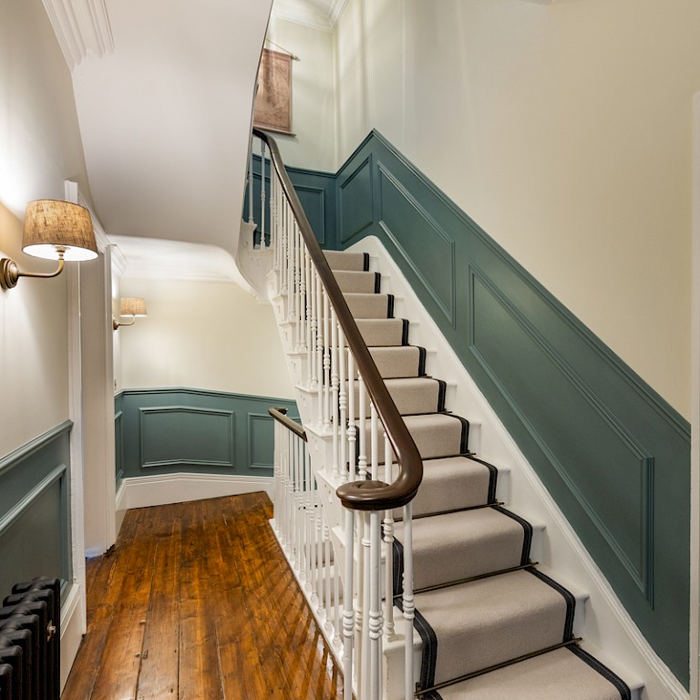 The client wanted to preserve the character of a historic building, enhancing the original features. Interior renovation was carried out to all rooms including the hallways, staircase, kitchen & utility room, bathrooms, public rooms and bedrooms. We also excavated and created a lightwell structure to let light into basement rooms. We carried out all painting & decorating work, installed the kitchen & utility, bathrooms, timber panelling, coving, flooring, lighting, radiators, internal doors and fitments. We refurbished the staircase, wooden flooring and conservation coving and finally landscaped the exterior. We enhanced a traditional property with modern elegance and functionality.